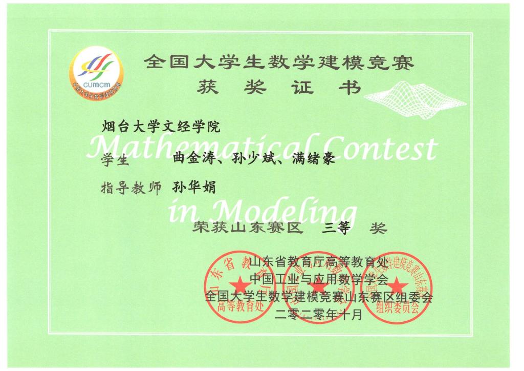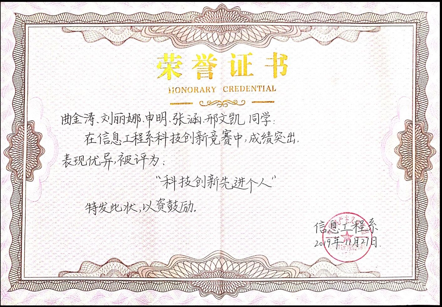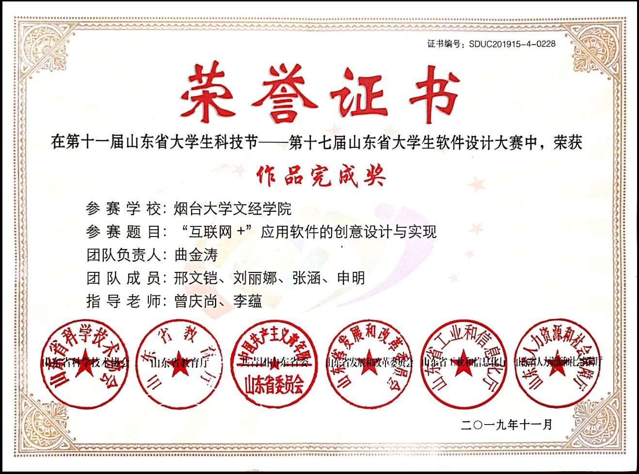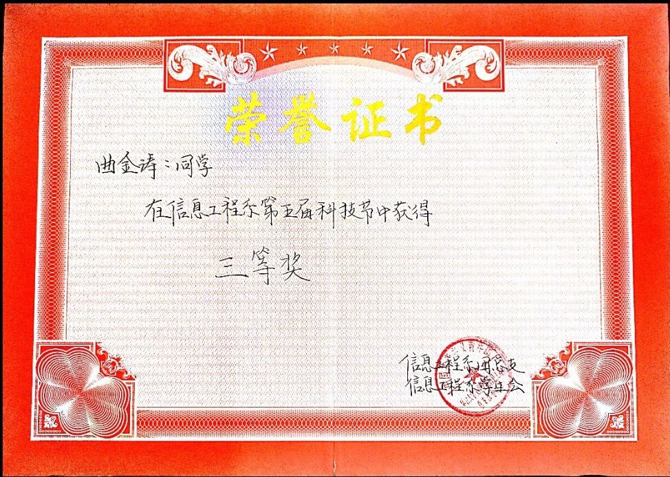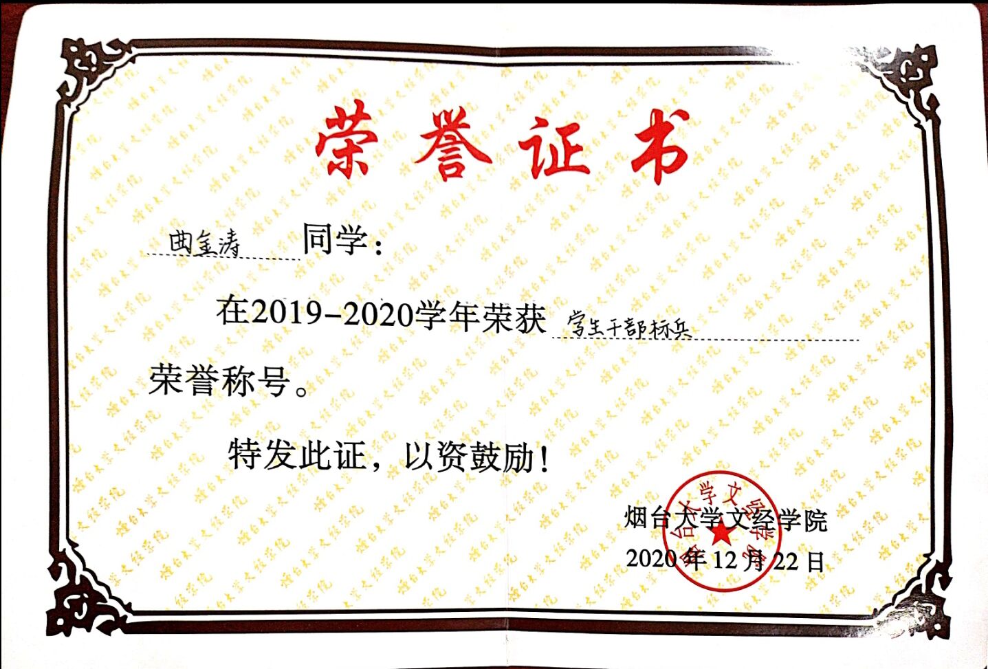 曲金涛,男,1999 年12月出生,团员,汉族,本科在读,永利集团信息工程系计算机科学与技术专业,现担任永利集团信息工程系团总支宣传部部长、信1802-1班团支部的组织委员。入校以来严格遵守学校的各项规章制度,做好模范带头作用。平日我妥善处理好班级工作以及和同学之间的关系,在各个方面取得了较大的进展。在学习上我比较系统的学习并掌握了较为扎实的专业知识获得国家级比赛奖项一项,省级比赛奖项四项,学校组织各类活动获奖十余项,连续三年获评烟台大学年度优秀共青团干部、“优秀学生干部”荣誉称号。在思想积极要求上进,不断提高政治素养,积极向党组织靠拢。积极组织及参加各类实践活动,在暑假期间赴临沂革命老区进行社会实践调研活动,获得校级优秀社会实践论文二等奖。疫情期间积极联系帮助当地学校,村委会进行疫情防控工作。获山东省大学生软件设计大赛三等奖、山东省大学生物理科技创新大赛一等奖、全国大学生数学建模竞赛山东赛区三等奖、烟台大学2020年度大学生“三下乡“社会实践优秀论文二等奖、烟台大学文经学院“优秀学生干部”荣誉称号等十余项奖项。