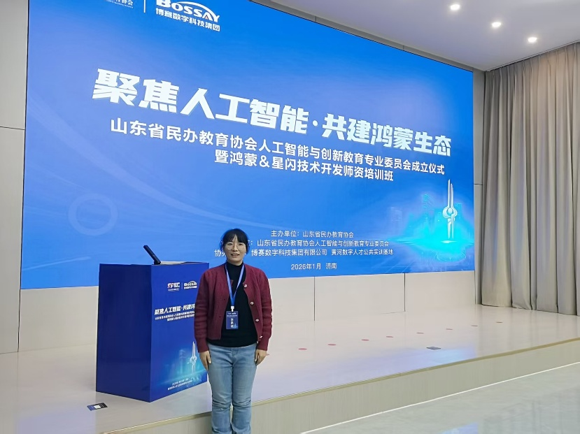 为紧跟万物互联时代技术发展趋势,推动人工智能与创新教育深度融合,加强鸿蒙生态人才培养,2026年1月16日至18日,由山东省民办教育协会主办的“人工智能与创新教育专业委员会成立仪式暨鸿蒙&星闪技术开发师资培训班”在济南黄河数字人才公共实训基地成功举办。我院yl9193永利集团骨干教师付娜参加此次培训,深入学习了鸿蒙与星闪前沿技术,为学院相关课程建设与人才培养注入新动力。