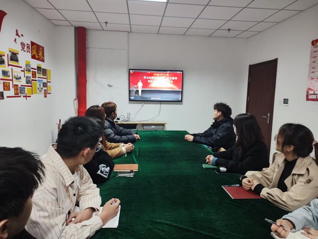 会议伊始,全体党员认真观看了“学习宣传贯彻党的二十大精神,青春为祖国 挺膺共担当”主题思政大课。王书记指出,党的二十大是一次高举旗帜、凝聚力量、团结奋进的大会,学生党员要把学习宣传贯彻党的二十大精神作为当前和今后一个时期的首要政治任务,自觉用习近平新时代中国特色社会主义思想武装头脑、指导实践、推动工作。随后,王书记强调,学生党员要牢固树立“四个意识”,加强政治理论、业务知识学习,全面提高自己,以崭新的精神风貌迎接未来的工作和挑战,努力为新时代中国特色社会主义贡献自己的力量。最后,全体党员畅谈心得体会,并决定以此次学习为助推,全面学习、全面把握、全面落实党的二十大精神。
