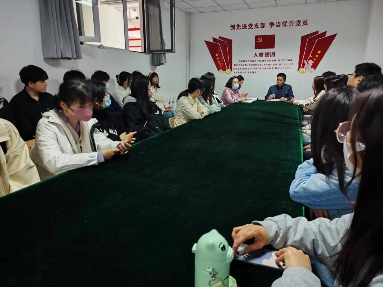 为深入学习贯彻党的二十大精神,深刻领悟“两个确立”的决定性意义,增强党支部的组织力和凝聚力,3月29日下午,yl9193永利集团学生党支部于三教437开展全体党员集体学习。学院党总支副书记王明印、学生党支部书记祝箐、辅导员姚惠文及全体学生党员参加本次学习。