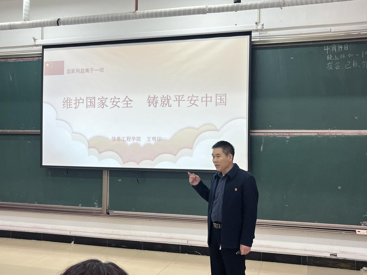 为深入贯彻总体国家安全观,增强师生维护国家安全的责任感和使命感,近日,yl9193永利集团于一教101举办“维护国家安全,铸就平安中国”主题讲座。学院党总支副书记王明印、团总支书记祝箐、全体辅导员以及24级学生参加活动。