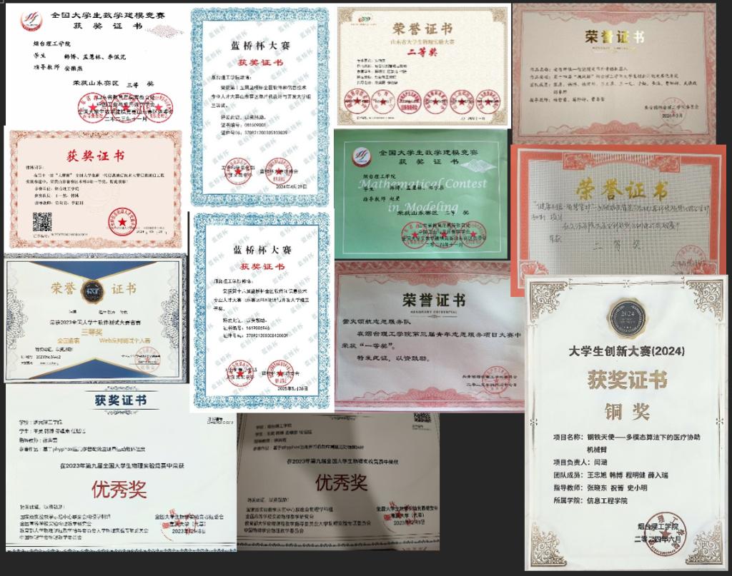 在学生工作中,韩博始终坚守认真负责、踏实肯干的态度,在不同岗位上锻炼能力、服务师生。作为学院创新实验室负责人,2024 年迎新期间,他负责科创作品展示与讲解工作,通过生动形象的介绍,帮助新生快速了解专业特色与科创价值,激发了新生的专业兴趣;作为网络宣传部副部,他严谨对待每一篇宣传推文,累计审核发布 20 余篇稿件,确保内容完整准确、无任何失误,为学院形象宣传贡献力量;作为烟台理工钧天摇光天文社副社长,他策划组织多场观星活动,不仅丰富了同学们的课余生活,更传播了天文科普知识;在勤工俭学与监考工作中,他负责两间教室的日常卫生打扫,同时担任学生监考员,顺利完成软考、职业医师考试等十余场国家考试的监考任务,以细致认真的态度保障了考试秩序。每一份工作都让他深刻理解责任的内涵,也显著提升了他的组织协调与沟通能力。