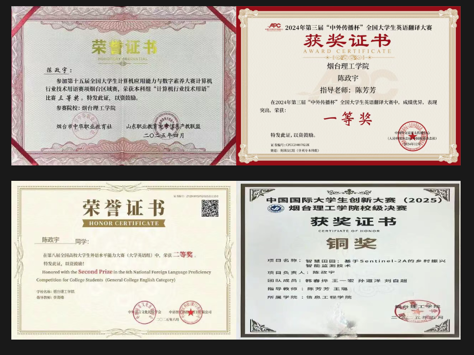 “道阻且长,行则将至;行而不辍,未来可期。”对陈政宇而言,大学期间的荣誉与经历,是成长路上的里程碑,更是继续前行的动力。他始终保持谦逊态度,清醒认识到自身不足,未来将继续以勤奋为笔、以坚持为墨,在专业学习、实践服务的道路上不断探索,努力成长为有理想、敢担当、能吃苦、肯奋斗的新时代大学生。