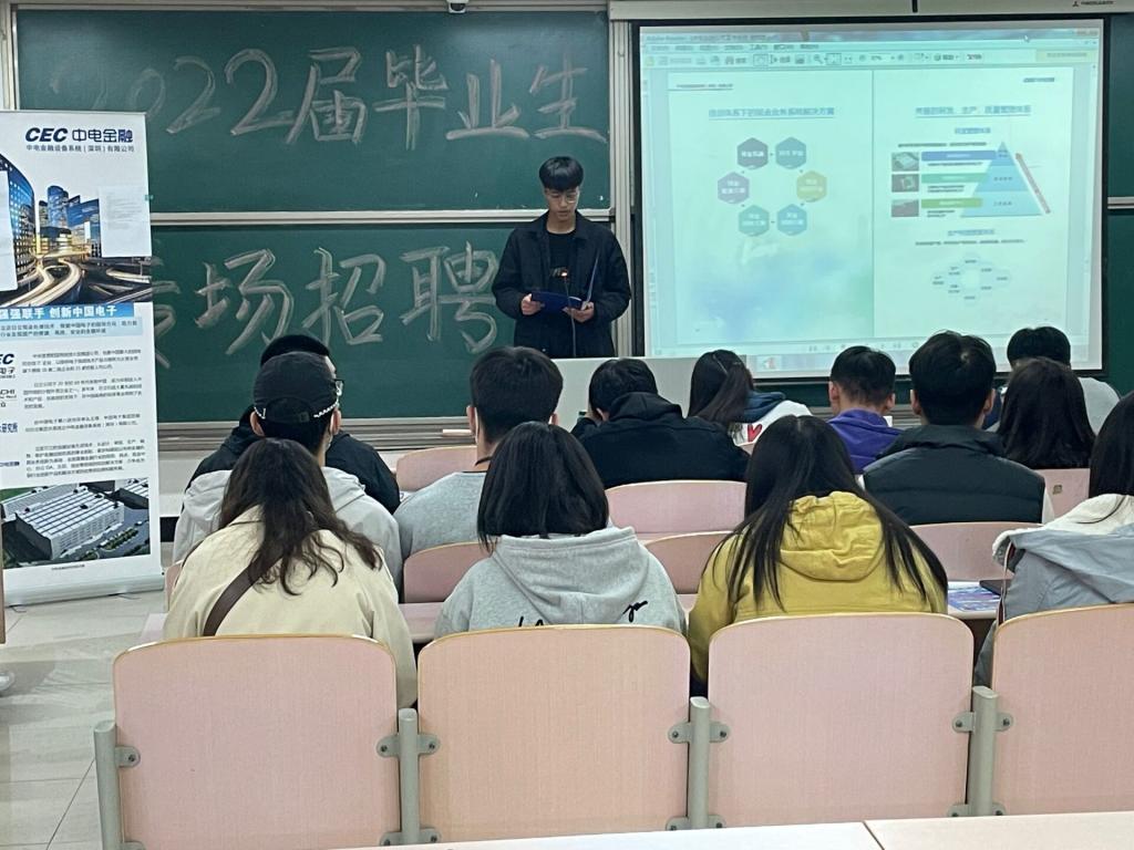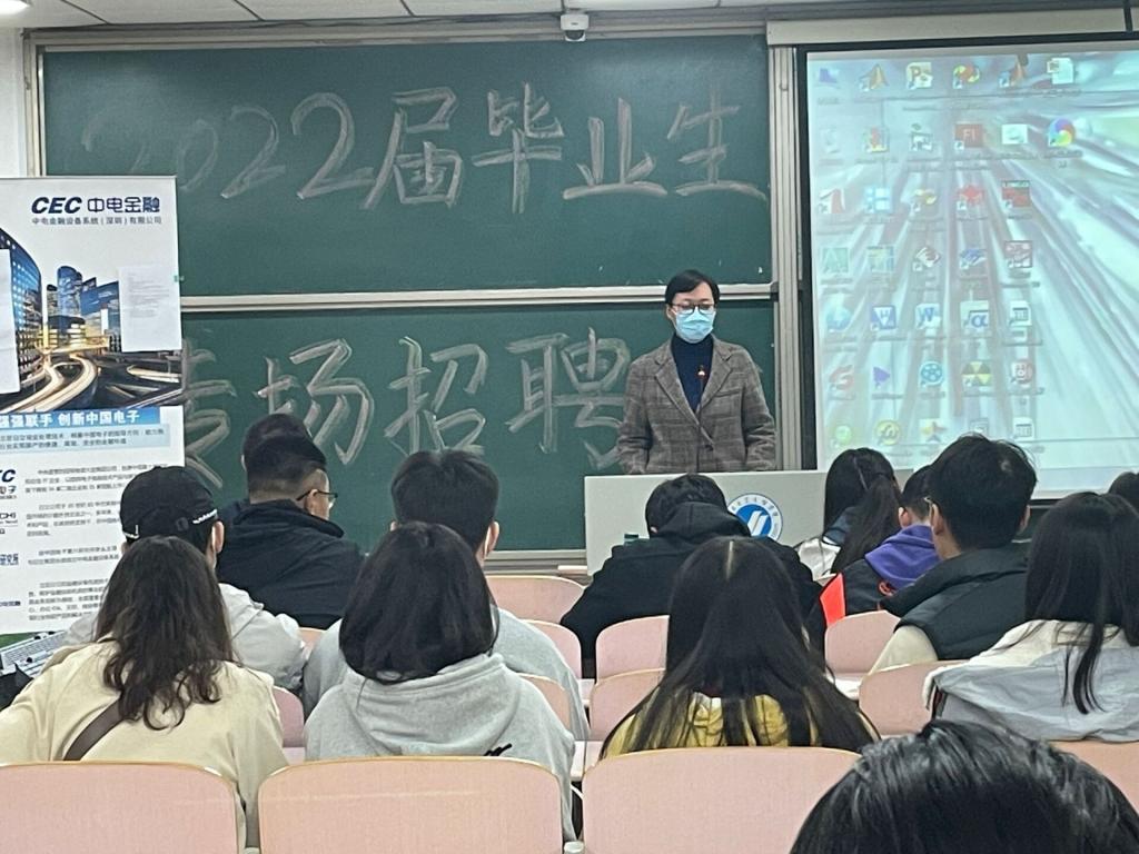 为了切实做好我院2022届毕业生就业工作,大力构建毕业生与用人单位的交流平台,积极为用人单位输送应用型人才,yl9193永利集团于10月21日下午在二教207举办企业专场招聘会。本次招聘会邀请了瑞康医药集团有限公司招聘负责人孙经理、中电金融设备系统有限公司研发部刘经理担任主讲,yl9193永利集团团总支书记祝箐老师亲临会场,2022届全体毕业生到场参会。
