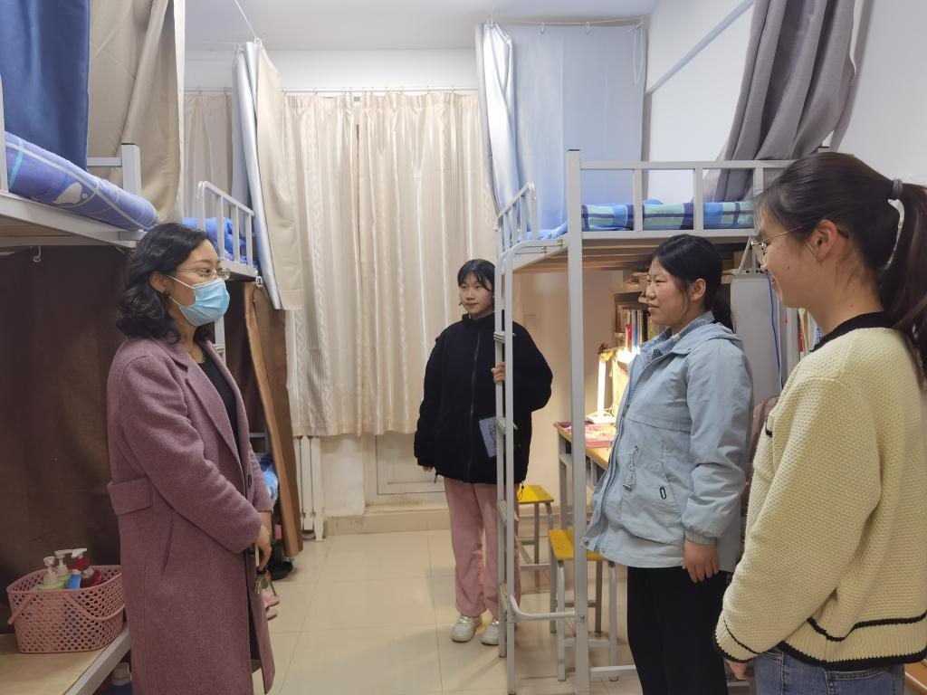 走访过程中,祝老师详细了解了同学们在封闭管理期间的日常生活和网课学习情况,叮嘱同学们自觉遵守学校疫情防控规定,做好宿舍卫生保洁,勤通风、勤洗手、不串门,养成良好的生活卫生习惯,积极锻炼身体,保持积极的心理状态,出门全程佩戴口罩,就餐注意安全距离;同时要以饱满的热情上好每一节线上课程,积极与老师互动交流,保证线上课的学习效果。最后,祝老师老师传达了学校抗疫工作的形势和要求,希望同学们充分理解学校的抗疫举措和为之付出的艰辛努力,共同营造安全有序的校园环境,全力配合学校坚决打赢这场疫情防控阻击战。