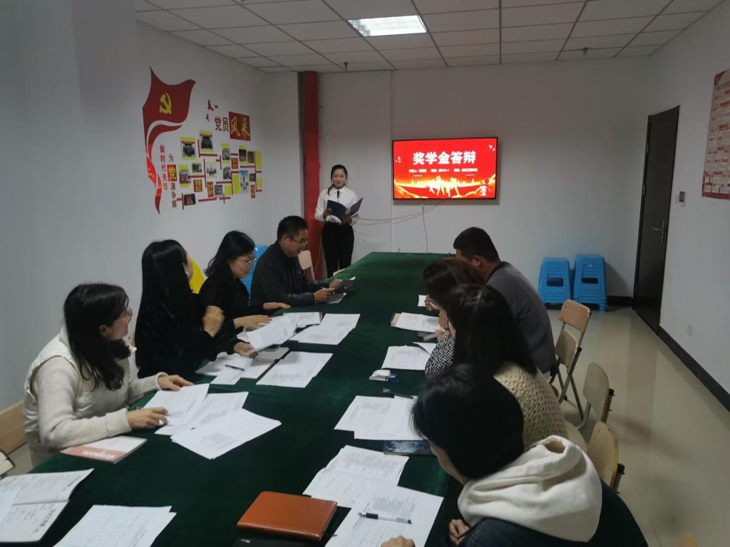 会议伊始,王书记宣读国家奖学金和省政府奖学金的评选条件、评审办法和评审程序,宣布答辩正式开始。随后,参加答辩的同学按照抽签顺序依次上台进行陈述、答辩,各位同学从本人简介、思想政治、学习成绩、科技创新、学生工作、文体素质等多个角度入手,展示了自己上一学年在学习工作中的成长与收获,彰显了我院学子刻苦努力、勤学奋进的良好风貌。经过激烈的角逐,拟推荐秦帅、朱春喜为国家奖学金获得者,刘玉珠、郭新健为省政府奖学金获得者。