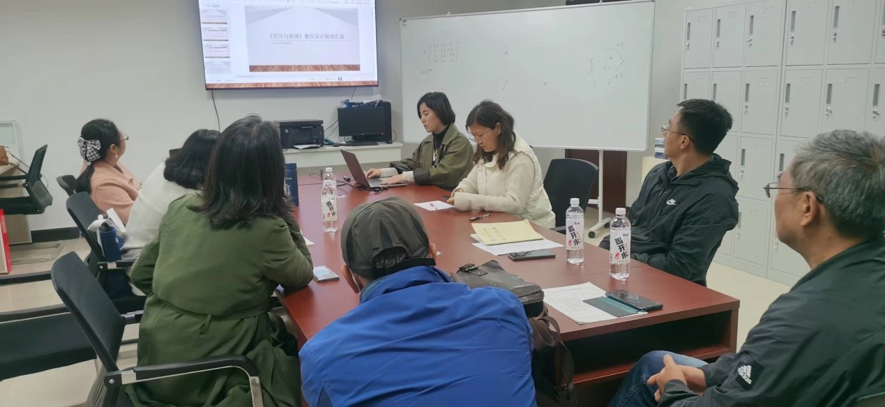 《信号与系统》的课程负责人刘美娟副教授从“教学内容改革、教学方法和手段更新、考评机制的更新、师资队伍建设”等方面详细谈了具体实现规划。《信号与系统》是一门理论性非常强的课程,也是大部分通信工程专业学生考研必考课程,教学难度较大,刘老师希望其团队成员在做好课程建设的同时,能在学生的考研辅导、学科竞赛等方面做出贡献。