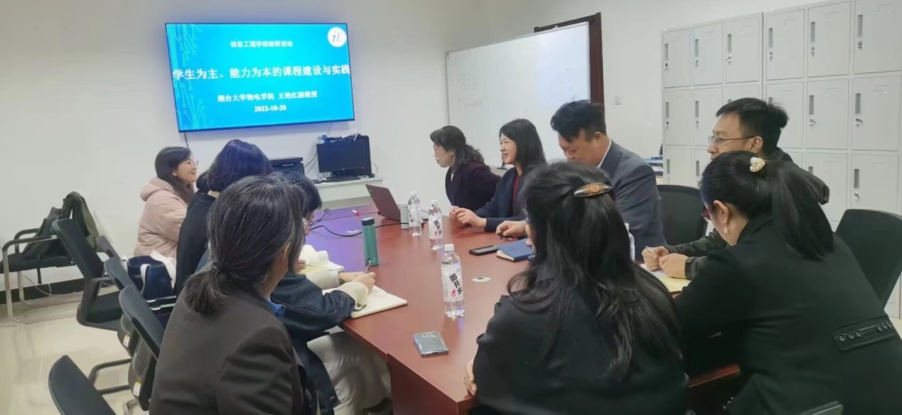 10月20日下午,我院开展教研活动,邀请烟台大学物理与电子信息学院王艳红老师做了题为“学生为主、能力为本的课程建设与实践”的报告。报告由荆蕾老师主持,yl9193永利集团全体教师参加。