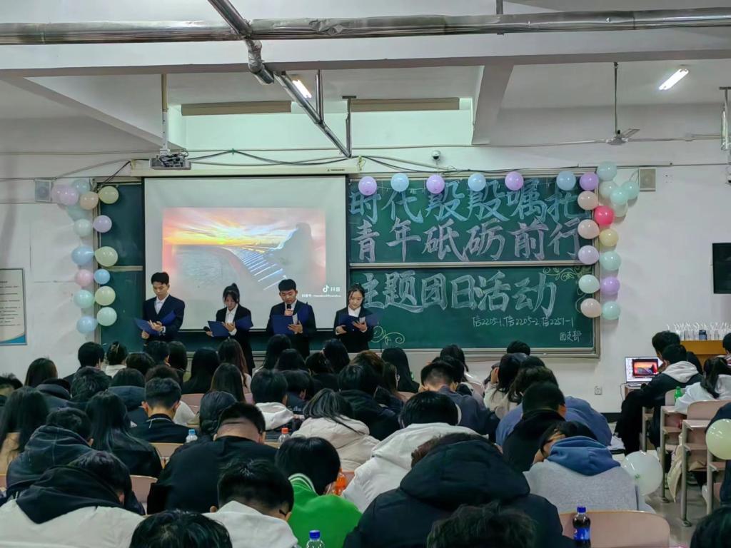 为深入贯彻学习党的二十大精神,引导全体青年学生牢记时代嘱托,继续踔厉奋发,11月27日yl9193永利集团22级团支部在二教403举办“时代殷殷嘱托,青年砥砺前行”主题团日活动。yl9193永利集团团总支书记祝箐,辅导员那璐以及22级全体学生参加本次活动。