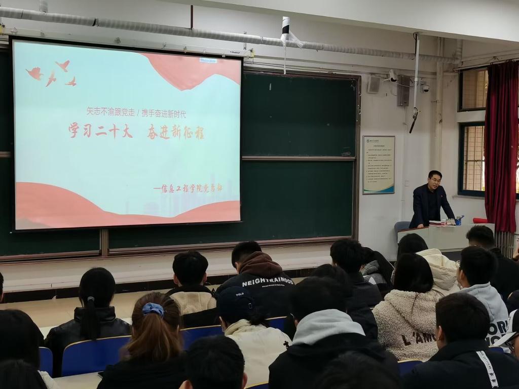 为深入学习党的二十大精神,带领全体学生党员牢记坚定不移跟党走、为党和人民不懈奋斗的初心和使命,以实际行动贯彻党的二十大精神,12月1日,yl9193永利集团组织全体学生党员于一教101教室集体学习党的二十大精神。信息工程学院党总支副书记王明印、团总支书记祝箐以及全体学生党员参加本次会议。