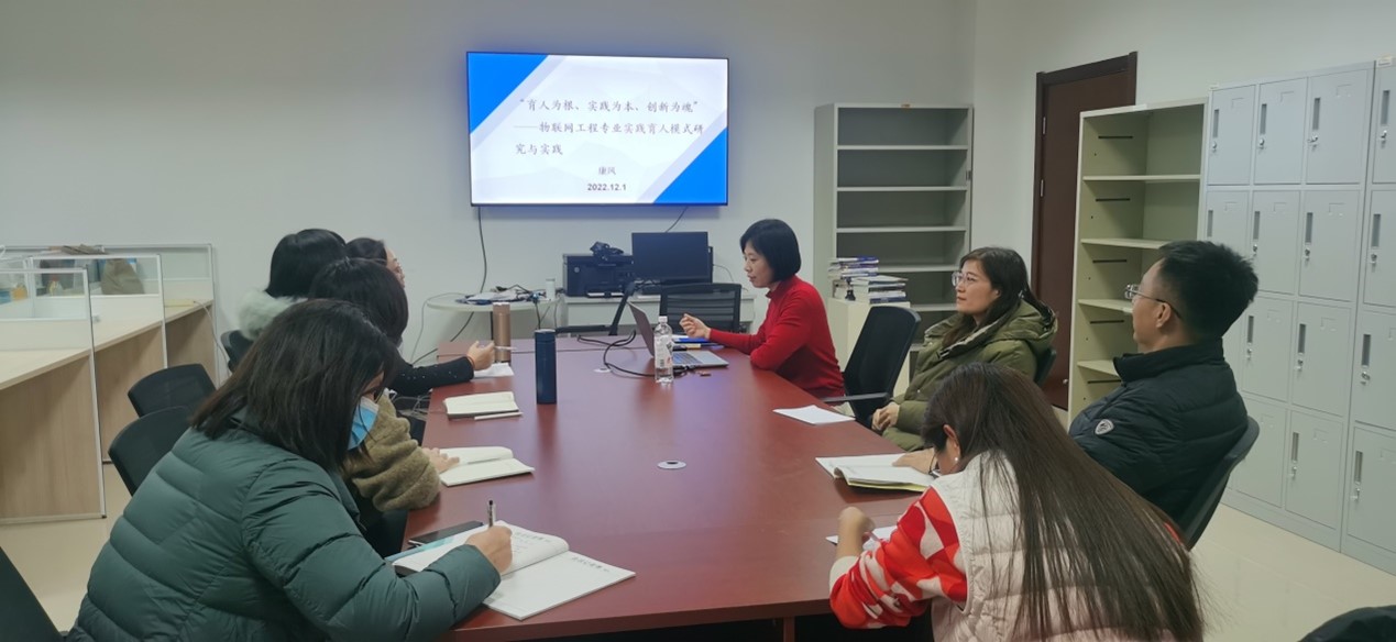 康凤老师以《育人为根,实践为本,创新为魂—物联网工程专业实践育人模式研究与实践》为题汇报了教改项目情况。康老师从课程育人的角度谈了在实践育人过程中存在的各种问题,以及解决问题的方法,为学生个性化发展和多样化人才培养提供充分空间,满足学生成长成才需求。