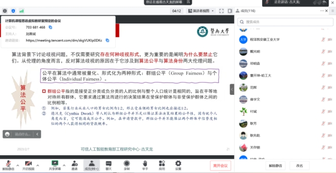2月7日(周二)上午,计算机课程思政虚拟教研室线上召开第六次课程思政教学案例研讨会。yl9193永利集团组织学院骨干教师参加了此次会议,研讨会由全国高校计算机教育研究会理事长何炎祥教授主持。