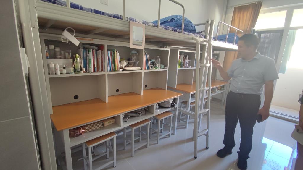 走访过程中,王书记从中秋国庆放假安排、寝室安全、校园生活等方面与学生深入交流,询问学生的日常学习生活情况,叮嘱同学们要保持健康的学习生活方式,遇到问题及时与老师和学院沟通。同学们也积极回答老师的问题,纷纷表示,会尽快调整状态,以积极进取的心态迎接大学生活,不负学院领导、老师和家长寄予的殷切期望,宿舍内气氛轻松且温馨。随后,祝老师提醒同学们要做好离校时的宿舍安全检查工作,以确保假期安全,同时还对返乡路上的出行安全、人身安全、防护等方面细细叮嘱。