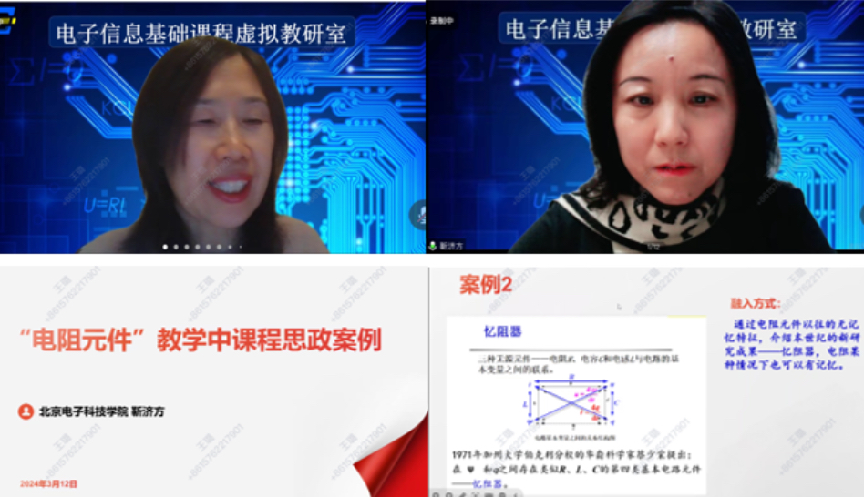 为了进一步推动课程思政建设,加强高校之间的交流,3月12日晚上,我院全体教师线上参加了由教育部电子信息基础课程虚拟教研室举办的题为“课程思政交流——电路元件”的分享交流会。会议特邀北京电子科技学院的靳济方副教授和烟台大学娄树理副教授作为报告主讲人,虚拟教研室负责人、北京邮电大学俎云霄教授主持交流会。