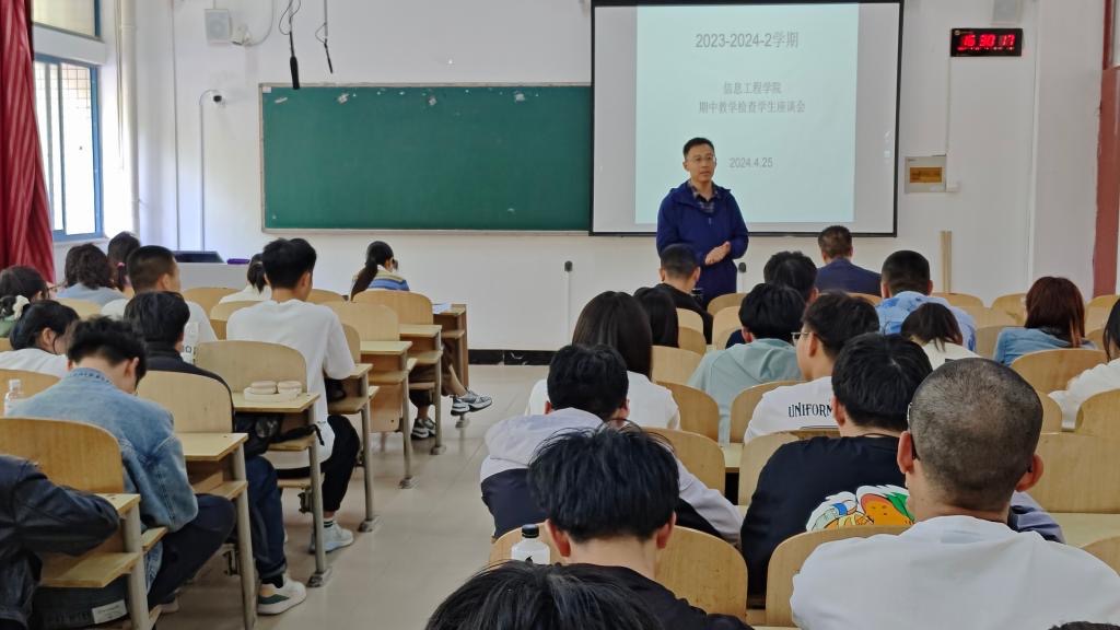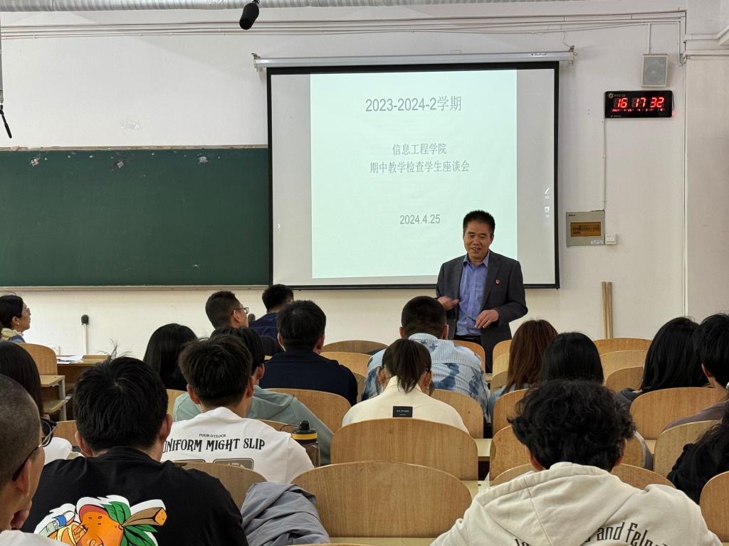 为全面、深入地掌握学院教学现状、加强教学管理的规范性、进一步推动教学质量稳步提升,信息工程学院于4月25日下午在一教116召开了期中教学检查教师座谈会,会议由段嗣妍老师主持,党总支副书记王明印、学院副院长原帅、各专业教研室主任及各班学生代表参加此次座谈会。