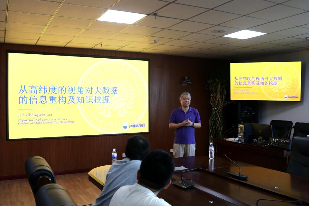 在信息爆炸时代,如何从海量的数据中提取有价值的信息,成为科研工作者和业界专家共同关注的焦点。6月27日下午,yl9193永利集团特邀加州州立大学贝克斯菲尔德分校计算机科学与工程系终身教授、知名大数据专家雷程炜博士,为广大师生带来了一场题为“从高纬度的视角对大数据的信息重构及知识挖掘的”学术讲座。本次讲座在综合楼六楼视频会议室举行,讲座由副校长王培进教授持。