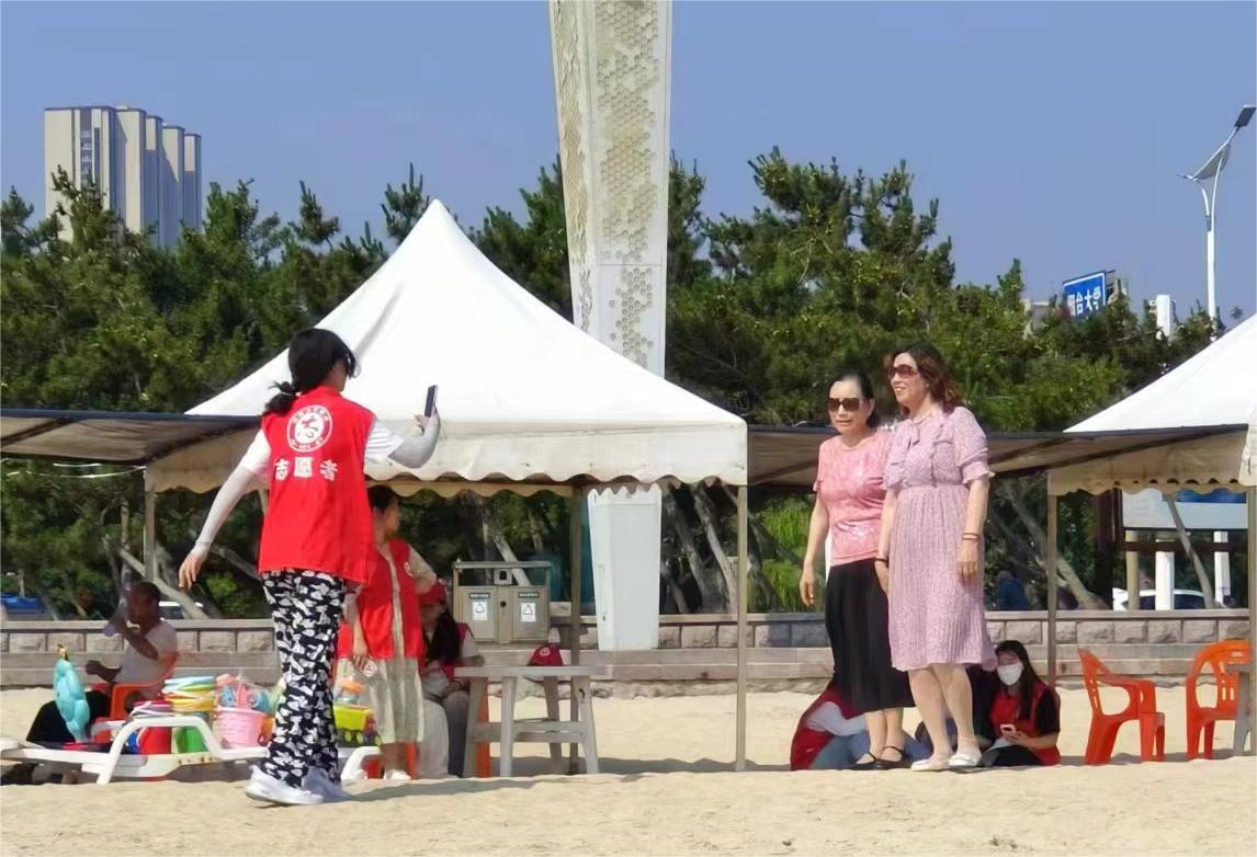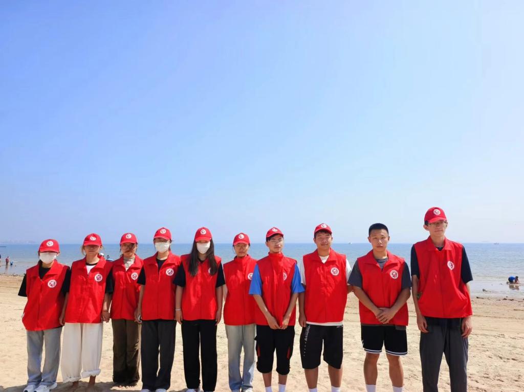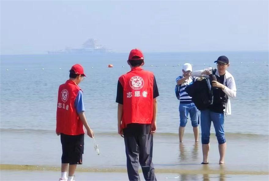 正值盛夏,烟大海水浴场有着许多外地游客,闲暇之余小队成员会热情帮助来往旅客指路、解决问题。而后的实践活动末期,小队成员对海洋保护进行拉横幅、录制视频等的宣传,极大地提高了群众保护海洋的意识,加深群众的印象,积极引导群众保护海洋环境。