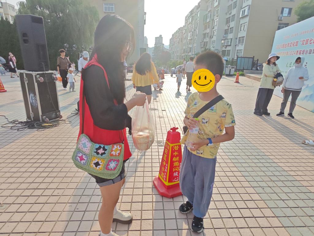 随后,温暖之星志愿服务队开始第二程活动,傍晚,集市热闹非凡,温暖之星志愿服务队的成员们精心布置了一个特别的摊位。摊位上展示着由扬帆公益发展中心孤独症儿童亲手制作的手工艺品,每一件作品都承载着孩子们的梦想与努力。志愿者们身穿统一的服装,面带微笑,耐心地向过往市民介绍这些独特的艺术品,并呼吁大家通过购买来支持孤独症儿童。市民们纷纷响应,用实际行动传递着对孤独症儿童的关爱与支持,现场洋溢着温馨与感动。