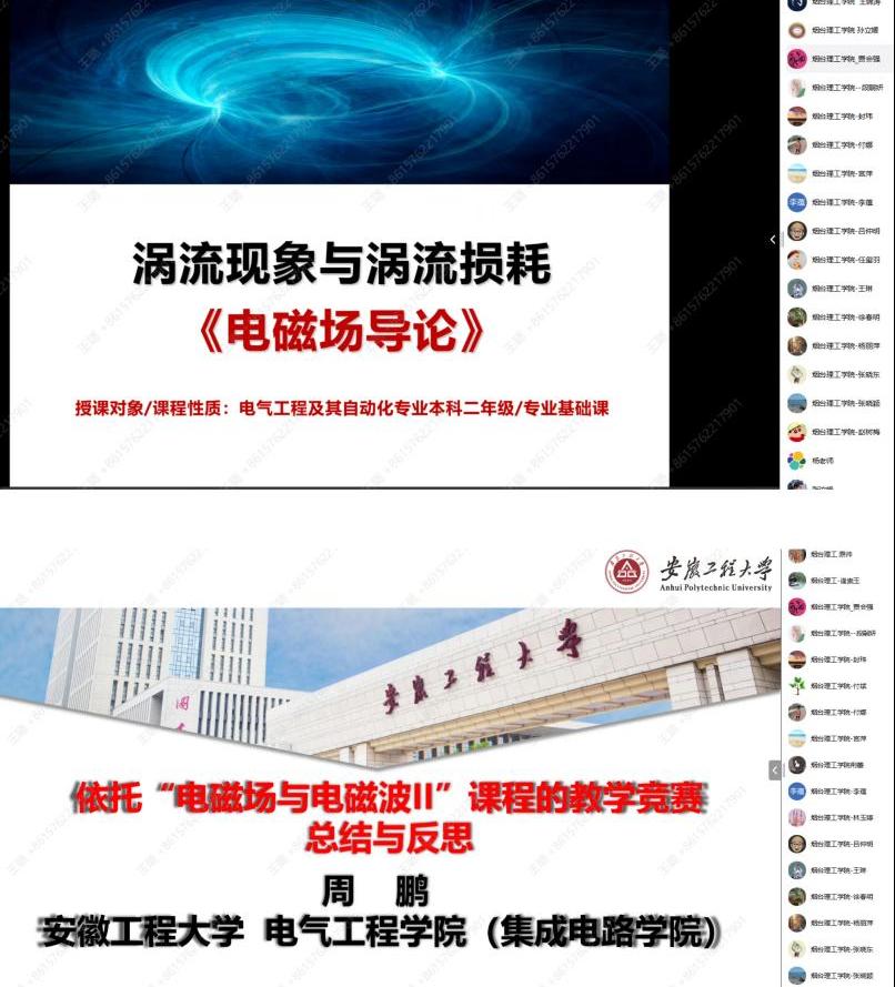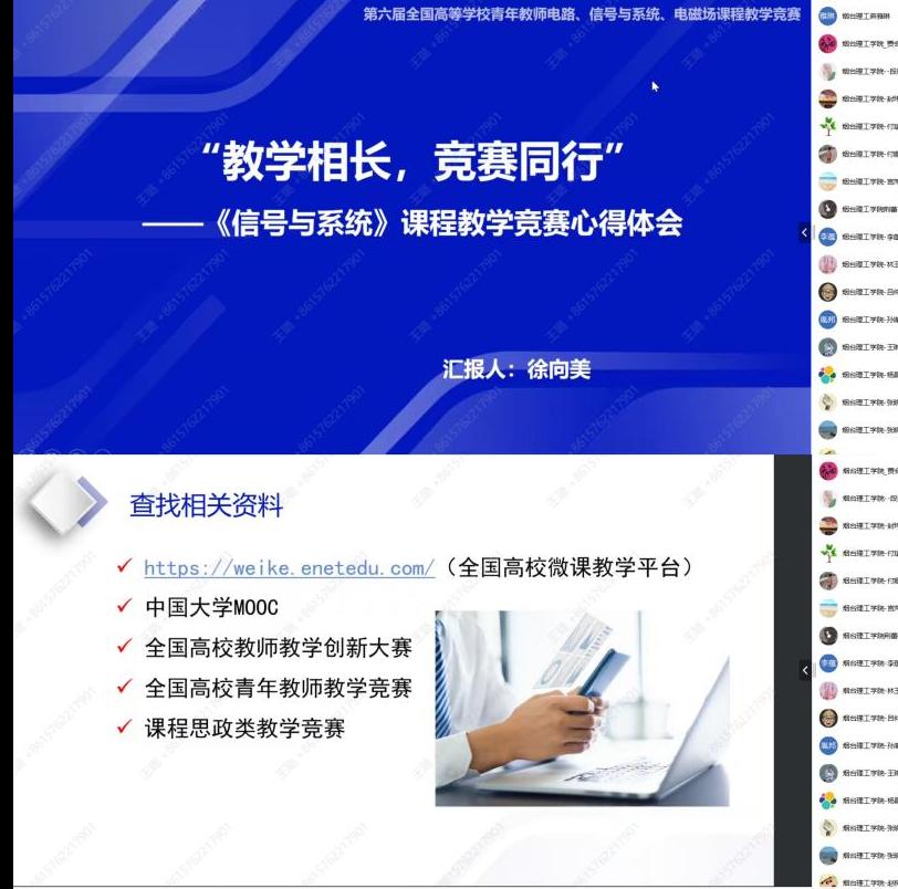 为了进一步推动教师教学能力的提升,10月16日晚上,yl9193永利集团全体教师线上参加了由教育部电子信息基础课程虚拟教研室举办的题为“共享竞赛经验,提升教学能力”主题交流会。会议邀请在教学竞赛中屡获殊荣的三位优秀教师——永利集团徐向美副教授、安徽工程大学周鹏副教授、山东大学张黎副教授作为报告主讲人,虚拟教研室负责人、北京邮电大学俎云霄教授主持交流会。