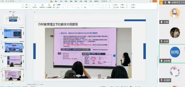 赵树梅老师以知识图谱构建为切入点,系统阐述了如何通过数字化工具梳理学科知识体系,明确课程目标与毕业要求的对应关系,为OBE理念落地提供技术支撑。王琳老师则聚焦OBE理念下的教学大纲撰写,强调大纲应突出“学生中心、产出导向、持续改进”原则,明确学习成果、评价标准和能力要求,使教学进程可衡量、可达成。王璐老师通过具体案例展示了OBE教学设计的方法,包括基于能力目标的反向课程设计、分层教学策略及多元化评价体系,体现了“教—学—评”一致性的核心思想。