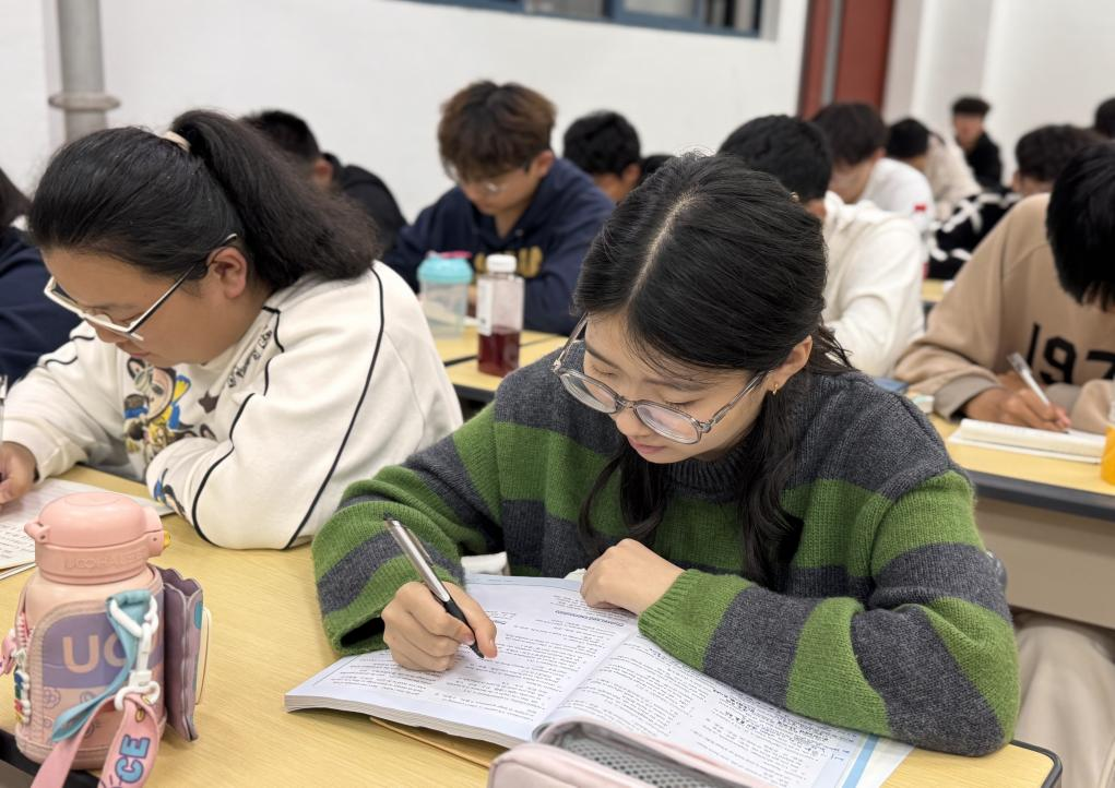 巡查过程中,学院老师们细致察看了各班级晚自习的学习状态与整体秩序。王书记指出,晚自习不仅是提升学生素质的必要途径,更是推动学风、班风、校风建设的重要组成部分,学院应持续以晚自习监督与管理为抓手,引导学生自觉成为良好学风的营造者、践行者和维护者。为确保自习实效。此外,学院推行了多项精细化措施。各教室统一配备了专用手机收纳袋,实行“学习时段集中管理”模式,有效提升了学生的专注度和自习质量。从巡查结果来看,各班级出勤整齐,纪律井然,新生们或潜心研读教材,或认真演练习题,展现出笃实好学的精神风貌。
