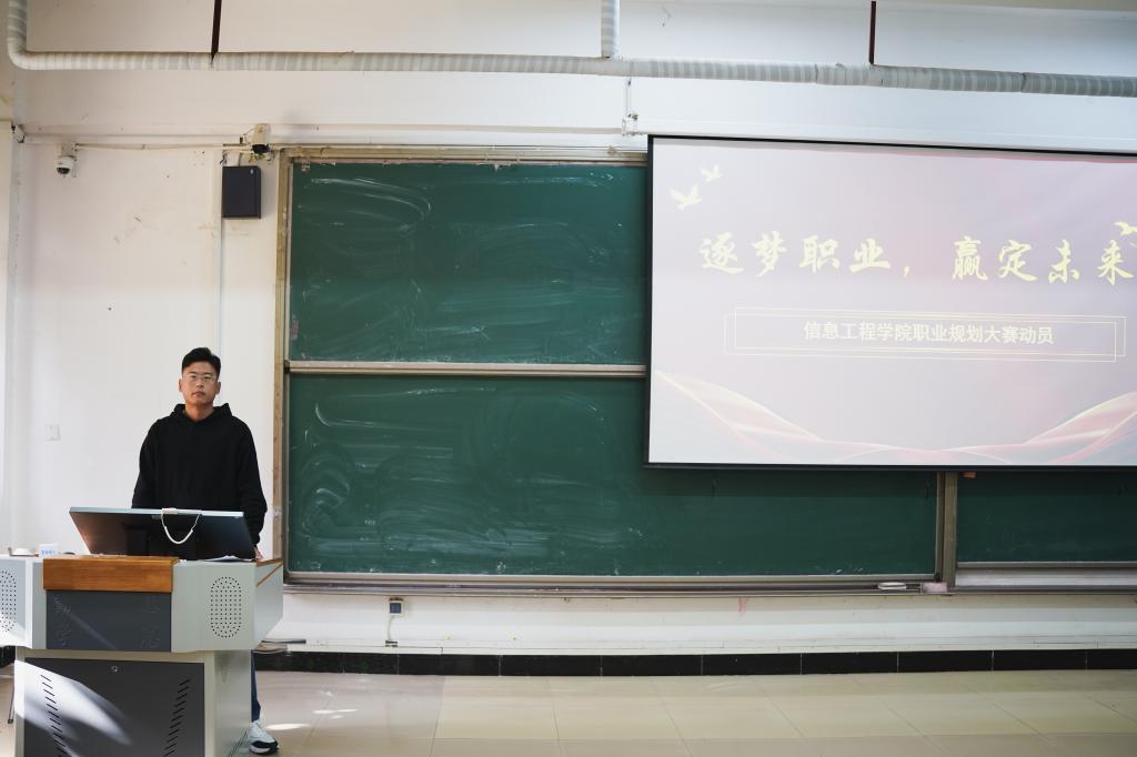 会议伊始,于东老师以“规划先行,赢在未来”为核心主旨,明确本次大赛“以赛促学、以赛促教、以赛促就”的核心导向,结合当下就业市场趋势与学生成长特点展开分享。他强调,职业规划是贯穿大学四年的“必修课”,并紧扣信息工程专业就业导向,通过具体案例阐释如何实现专业技能与职业目标的精准匹配,生动诠释了“早规划、早行动”的重要意义。随后,他详细解读了本次大赛的赛程安排、参赛要求、评审标准等关键信息,鼓励同学们踊跃报名,立足自身专业特色与兴趣特长,精心打磨参赛作品,充分展现当代大学生的职业素养与青春风采。最后,于老师针对答辩作品框架搭建、行业调研方法等问题耐心解答同学们的疑问,希望大家以大赛为契机梳理成长路径,在备赛中找准方向、彰显专业风采。