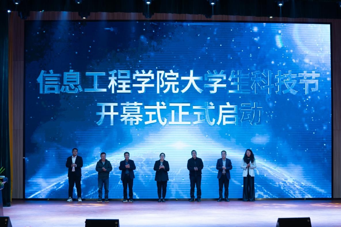 开幕式伊始,校长助理徐雪峰致辞,本届科技节以构建“赛事引领、校企协同、实践赋能”创新人才培养体系为目标,旨在打破理论与实践壁垒,通过实战锤炼学生创新思维与动手能力,为应用型人才搭建“学用转化”平台。学科竞赛获奖代表经验分享及成果展示环节由全国大学生电子设计竞赛嵌入式视觉类国家级二等奖获得者宋怀旭同学,结合备赛经历分享嵌入式视觉算法学习与突破;中国国际飞行器设计挑战赛全国二等奖获得者方威、王昭皓同学,结合机翼优化实例,解读理论向实践转化的创新路径;中国大学生计算机设计大赛国家级三等奖的获奖者曹智源、张文硕同学,通过分享“OpenCV对弈机器人”项目,展现信工学子解决实际问题的创新智慧与实践能力。2025届校友彭洪浩展示了其公司自主研发的多款智能化产品,为师生们带来了一场科技盛宴。随后,院长王中训为校友彭洪浩颁发“创业导师”聘书,与会领导共同为2024-2025学年科技竞赛获奖者、“十大优秀学子”、“读书之星”获得者颁奖,以榜样力量激发全院学子的奋进热情。“十大优秀学子”代表姜旭冉同学结合自身经历鼓励同学们在学习中既要“仰望星空”敢想敢创,也要“脚踏实地”关注细节,避免“纸上谈兵”式创新。开幕式尾声,全体领导嘉宾共同上台为yl9193永利集团第十二届大学生科技节点亮科技之光,并与师生共同观看文艺汇演,在科技与艺术的交融中,为本次开幕式画上圆满句号。