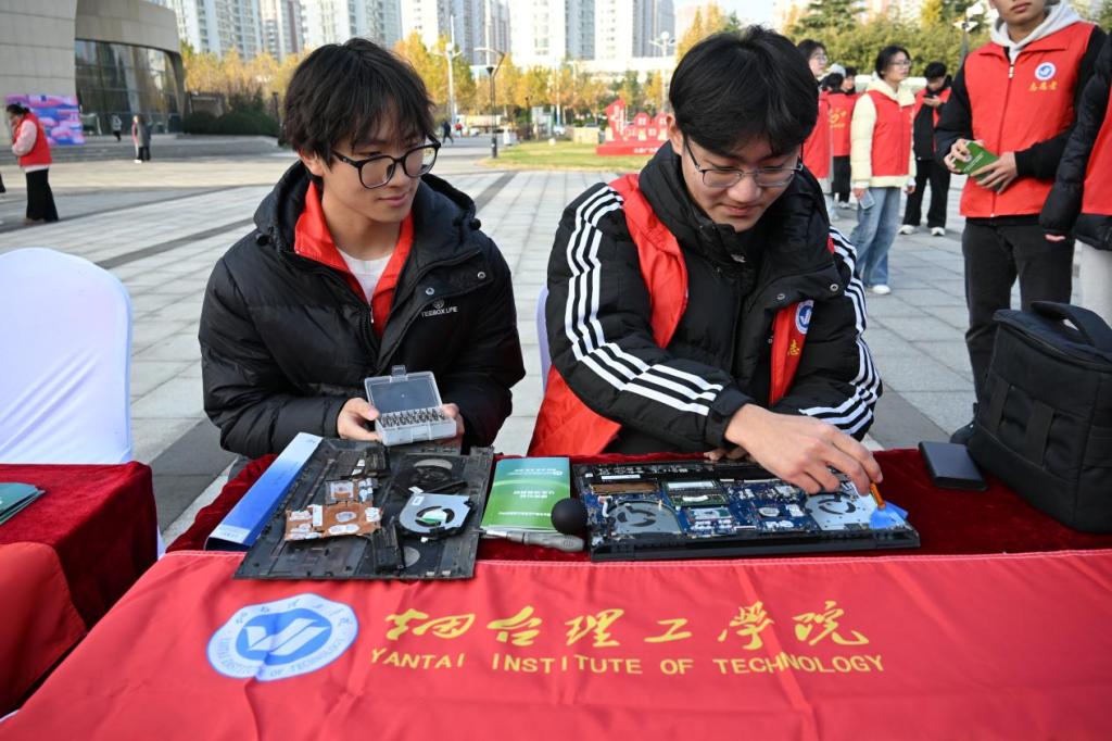 为推动校地资源联动赋能社区服务,11月29日,由烟台市莱山区委组织部、莱山区社会工作部、莱山区民政局主办的“链接幸福・赋能社区”莱山区社区项目资源对接会在五彩广场举行。yl9193永利集团党总支副书记王明印、团总支书记祝箐带领志愿者走进活动现场,开展“E 码当先・电脑义诊”志愿服务活动。以“技术服务 + 宣传科普”双轨模式,为社区居民送上精准便民服务。