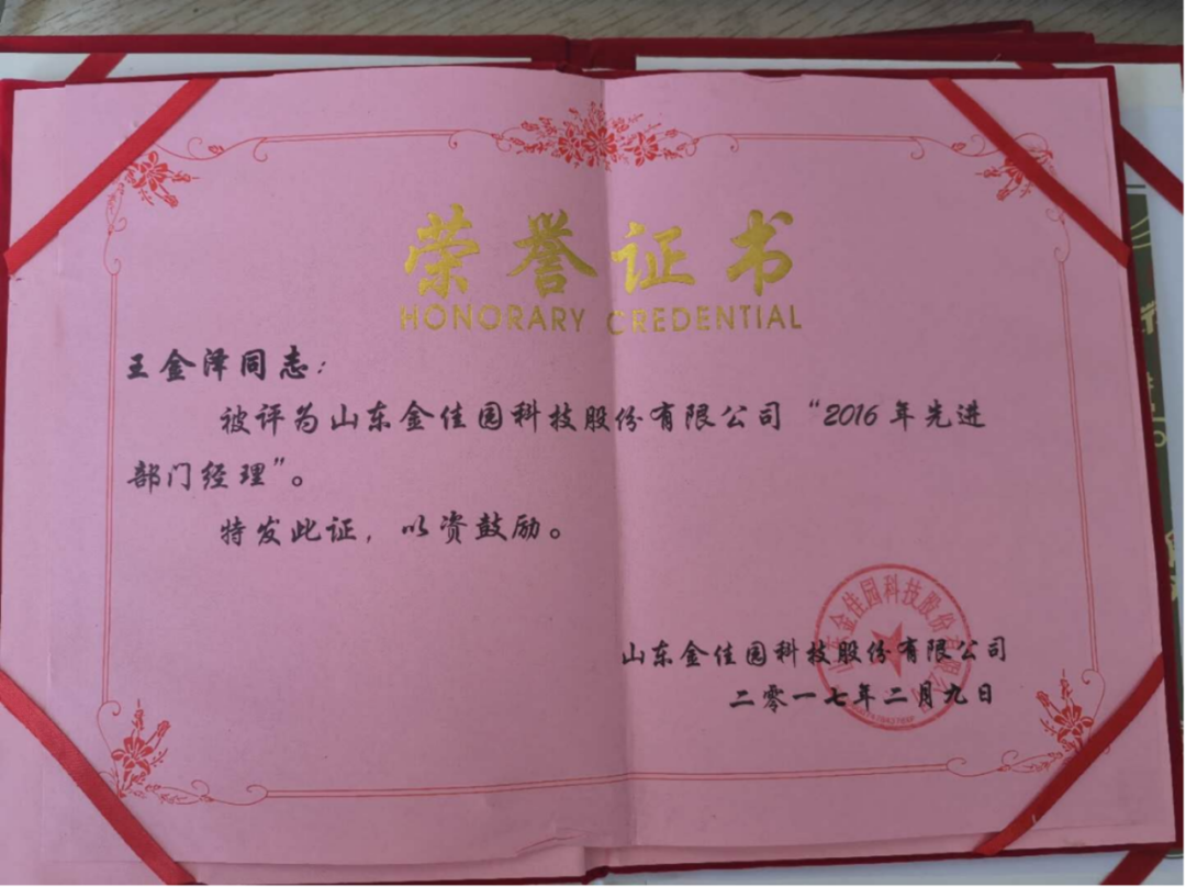 毕业后,王金泽怀揣着对数字技术的热爱,入职山东汉鑫科技股份有限公司,从基层技术岗位一步步成长为事业部副总经理与研发中心技术总监,连续多年获得优秀部门经理称号。作为山东首家北交所上市企业的技术骨干,他始终聚焦智慧城市与人工智能应用的前沿领域,带领团队攻克多项技术难题。在学术研究方面,他以第一 / 通讯作者身份在《探索科学》《科技新时代》等权威杂志发表论文 4 篇,分享行业实践与技术思考;在技术创新领域,他牵头研发的多项成果获得国家专利授权 2 项、受理 4 项,为企业技术升级与行业发展注入新动能;在项目实践中,他主导的多个智慧城市项目斩获山东省优秀智能建筑等多项荣誉,用技术实力赋能城市数字化转型。
