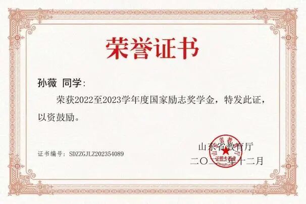 “宝剑锋从磨砺出,梅花香自苦寒来。” 孙薇深耕学科竞赛,累计斩获 4 项省级奖项,以实干突破自我。
